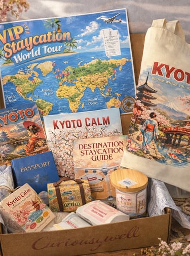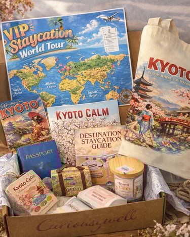 The Curious Jewell VIP Staycation World Tour transforms an ordinary evening into a luxurious destination escape. Each bundle is inspired by a beautiful place around the world and filled with handmade treasures designed to awaken your senses.