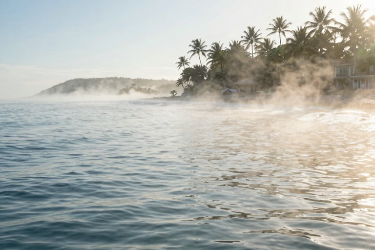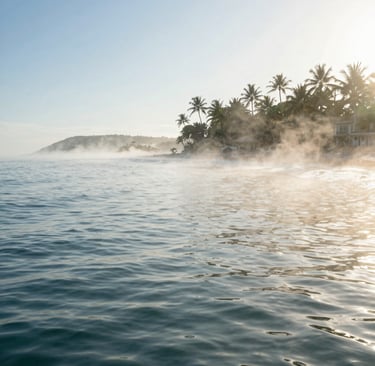 Palm trees sway gently. Waterfalls echo in the distance. The scent of ocean mist and tropical blooms drifts through the air.
